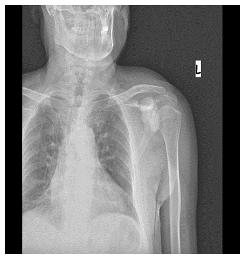Ameliyat Öncesi: Röntgende sol skapulada düzensizlik ve skleroz görülmekte.